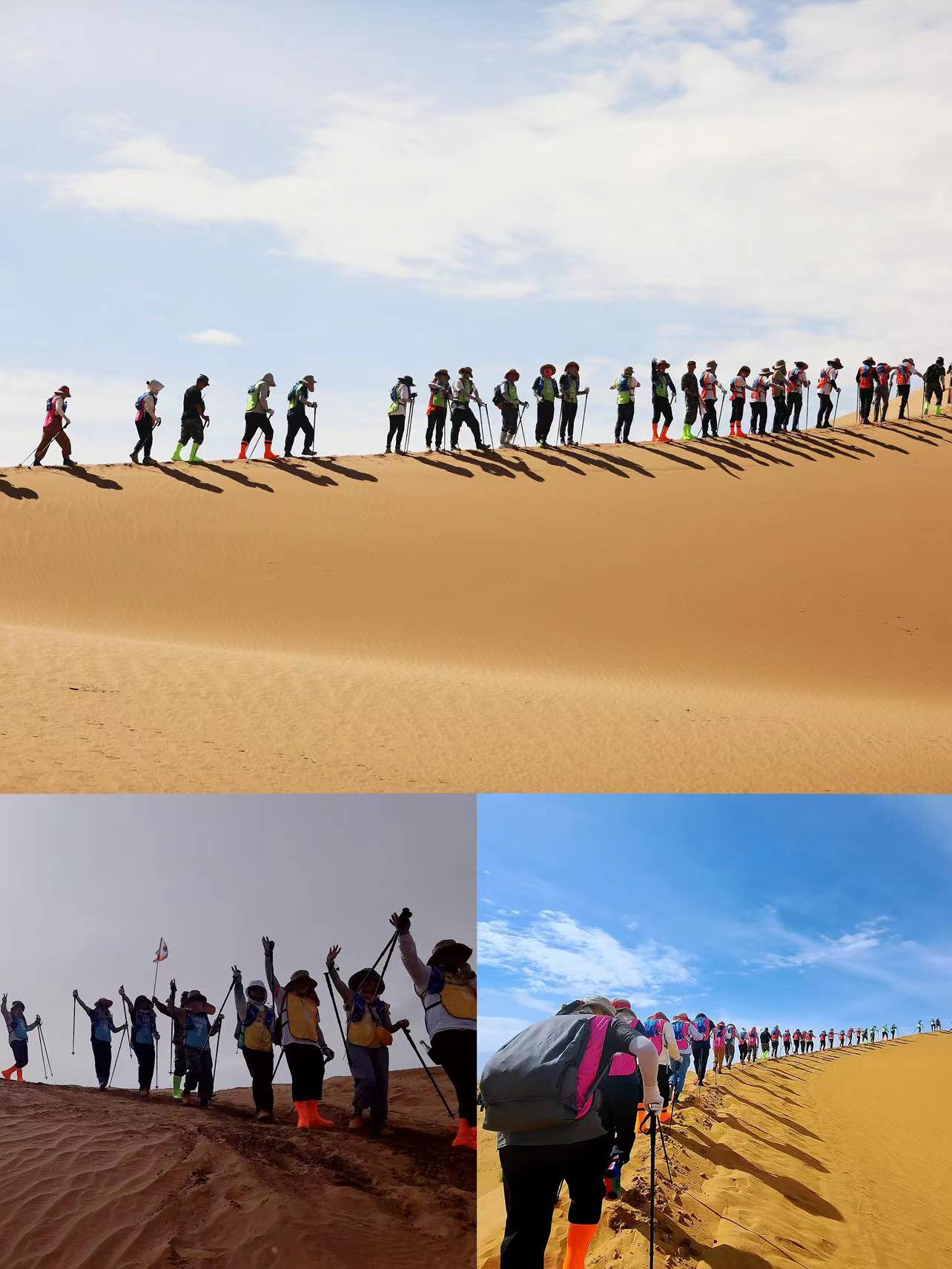 本次團建活動以“征服沙漠 超越自我 勇攀極限”為主題,由公司董事長吳耀軍親自掛帥,二百余名公司管理團隊成員分兩批次以小組編制比賽的形式舉行。沙漠徒步路線設計為24公里,賽程八小時,沿途配備補給點和休息站提供食物和水,另有醫療救助隊、沙漠巡視摩托車隊等后勤隊伍共約四十人提供全程后勤保障。