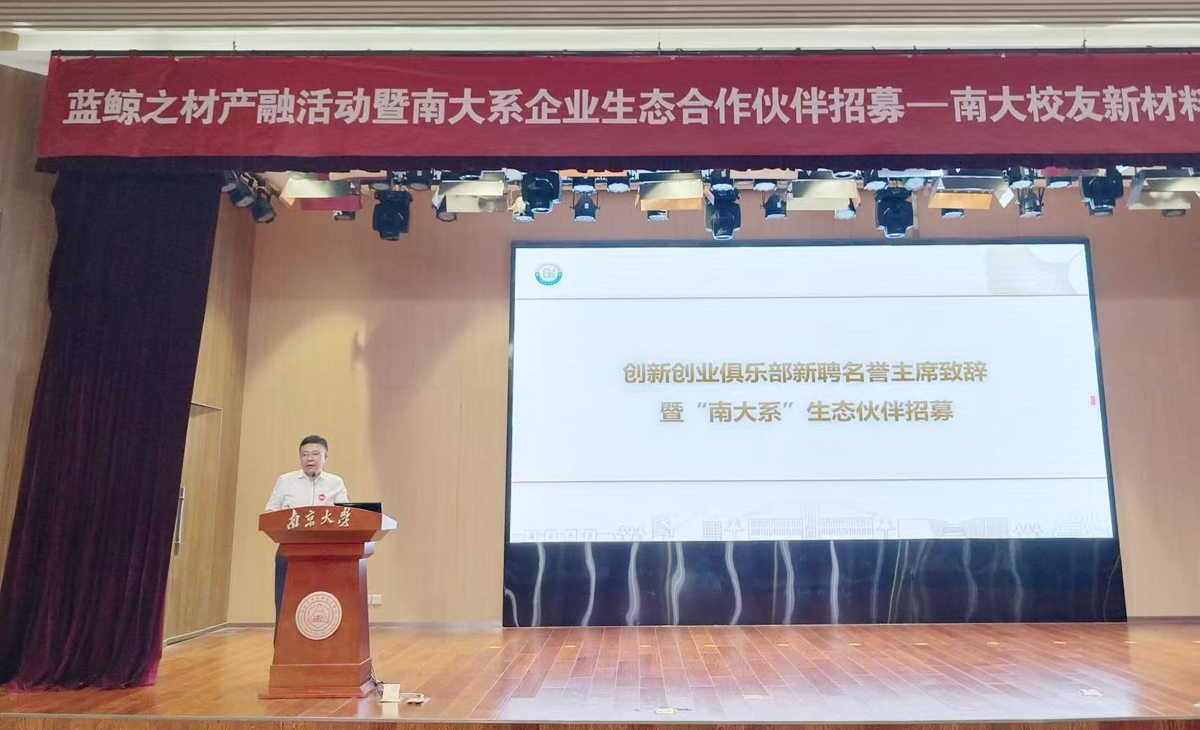 9月26日下午,在南京大學(xué)化學(xué)化工學(xué)院報告廳舉行了“藍(lán)鯨之材產(chǎn)融活動暨南大系企業(yè)生態(tài)合作伙伴招募-南大校友新材料項目和成果轉(zhuǎn)化交流會”,江蘇中旗科技股份有限公司董事長吳耀軍被聘為“南京大學(xué)校友總會南京校友會創(chuàng)新創(chuàng)業(yè)俱樂部”名譽(yù)主席。吳總致辭并隆重發(fā)布中旗科技的產(chǎn)業(yè)化需求,招募生態(tài)合作伙伴。